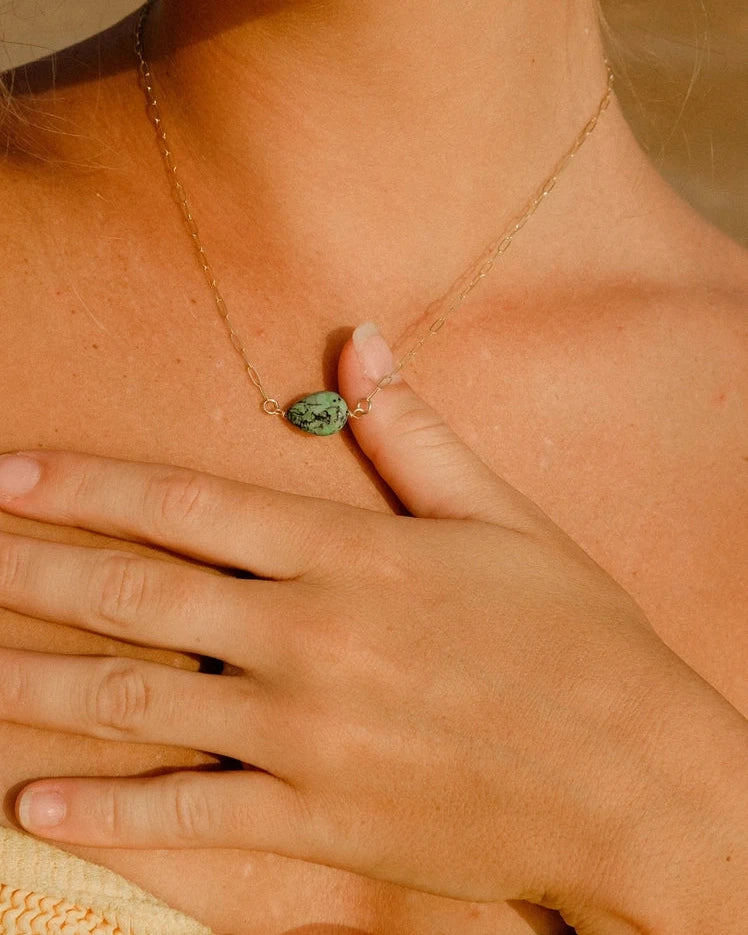 The Isla Vista Neckpiece is a stunning fusion of vibrant turquoise and rich African brass, crafted to capture the essence of earthy elegance. Featuring a delicate 18-inch gold-fill chain, this necklace is perfect for layering and adding a pop of color to any outfit. Whether worn alone for a minimalist look or stacked with your favorite pieces, the Isla Vista Neckpiece effortlessly blends bold statement with understated charm.